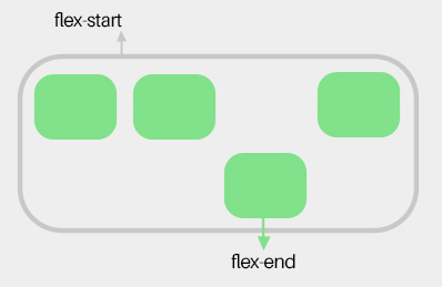 - flex-start: آیتم های منعطف در ابتدا محفظه منعطف چیده می شوند.