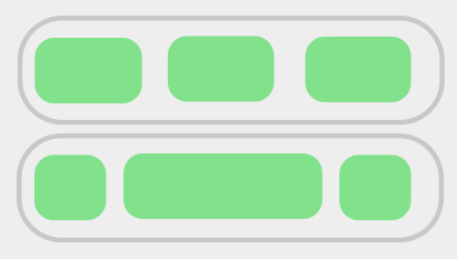 اگر به یک آیتم منعطف، مقدار 2 بدهیم و به بقیه آیتم های منعطف، مقدار 1 بدهیم، اندازه ی آن آیتم منعطف دو برابر بقیه آیتم های منعطف می شود.