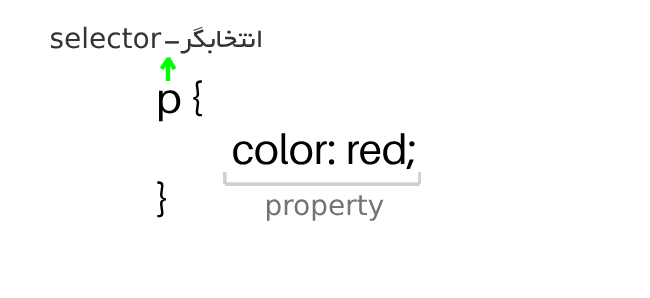 انتخابگر (selector) برای انتخاب المان HTML و استایل دهی به آن استفاده می شود.