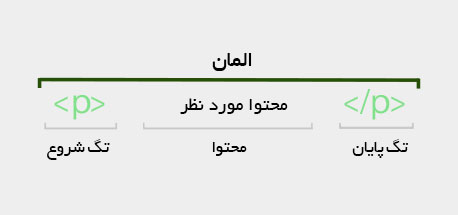 نکته: به مجموع تگ شروعی، تگ پایانی و محتوای بین آن ها المان گفته می شود.