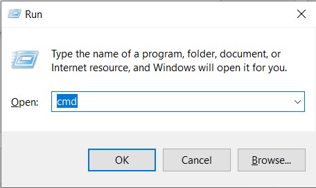 پس از نصب پایتون در سیستم کلید های win+R را بزنید و صفحه cmd را سرچ کنید تا باز شود.